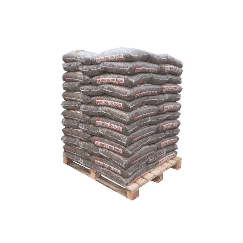 NUEVO EMBALAJE: Palé de 72 sacos de pellets de madera / 15 kg de pellets premium = 1080 kg.